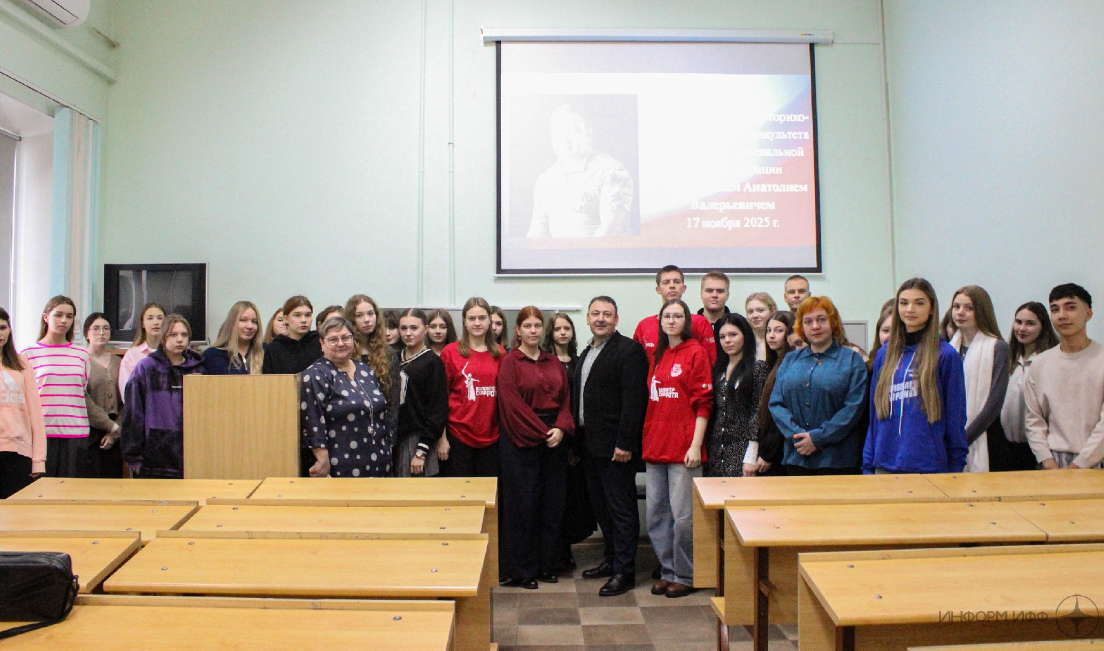 17 ноября 2025 г. в рамках патриотического воспитания это мероприятие организовали активисты Волонтерской роты и Молодой Гвардии. В преддверии празднования Дня Героев Отечества – даты, которую ежегодно отмечают 9 декабря, – урок мужества для студентов групп 25ИПД1,2, 24ИПД1,2, 23ИПИ1 и их кураторов провел ветеран боевых действий, участник специальной военной операции Анатолий Валерьевич Безобразов. Он поделился с ребятами личной историей, рассказал о своём пути к службе, о принципах взаимопомощи и выдержки, которые помогают бойцам в сложнейших ситуациях. Ветеран рассказал о том, что уже после службы прошел обучение по программе «Время героев», инициированной президентом России Владимиром Путиным. Основной темой кураторского часа стало формирование патриотизма и активной гражданской позиции. Юноши и девушки узнали, какие качества необходимы для служения обществу и как применять их в повседневной жизни. Анатолий Валерьевич особо отметил, что участники СВО хранят все письма, которые им присылают учащиеся со всей страны, и берегут, складывая в нагрудные карманы, считая их своеобразными оберегами.