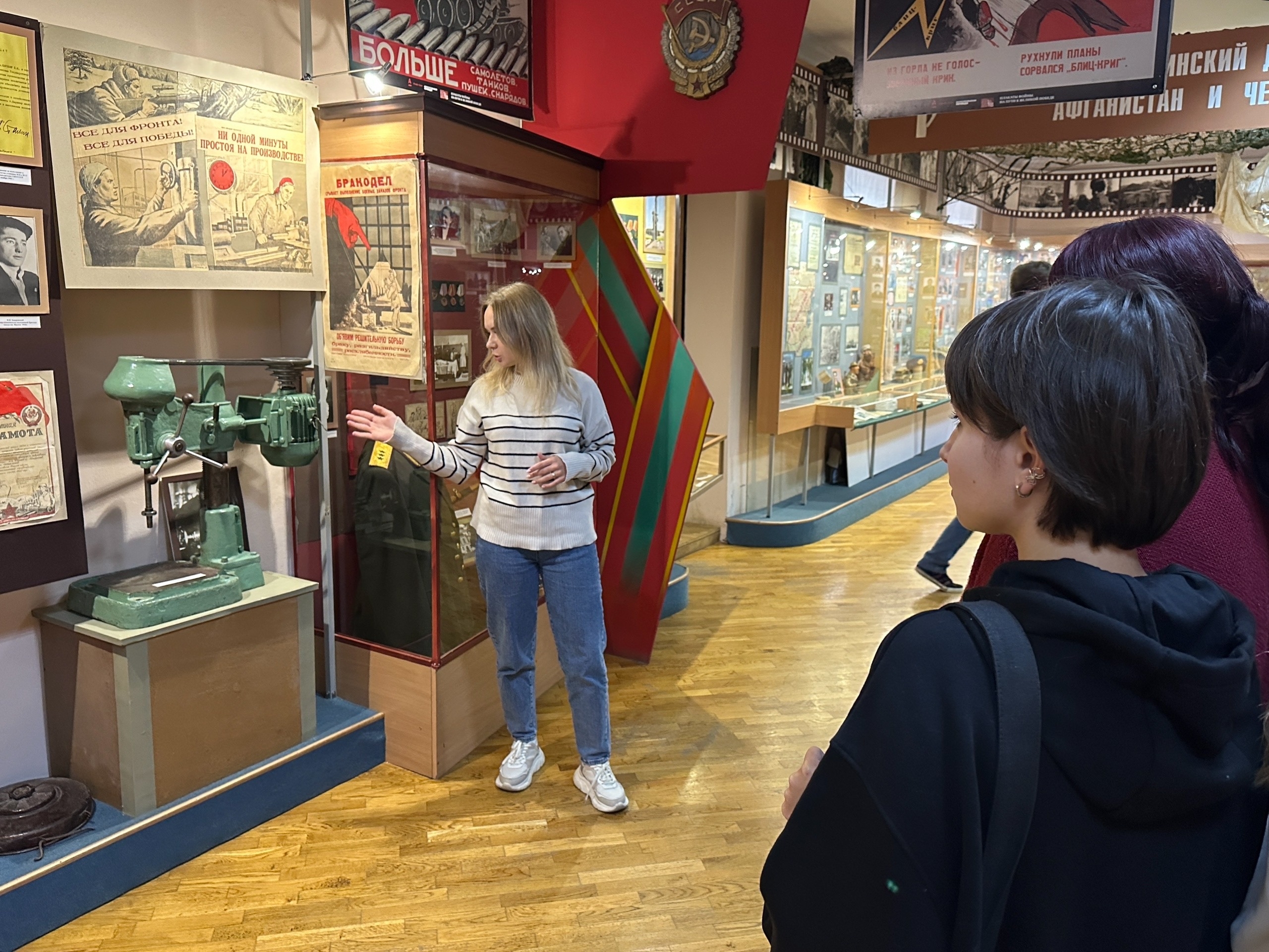 Также для студентов историко-филологического факультета в рамках реализации проекта и популяризации результатов исследования была проведена экскурсия в Пензенский краеведческий музей, где магистрант Яна Белова рассказала ребятам о трудовом подвиге школьников в период Великой Отечественной войны.